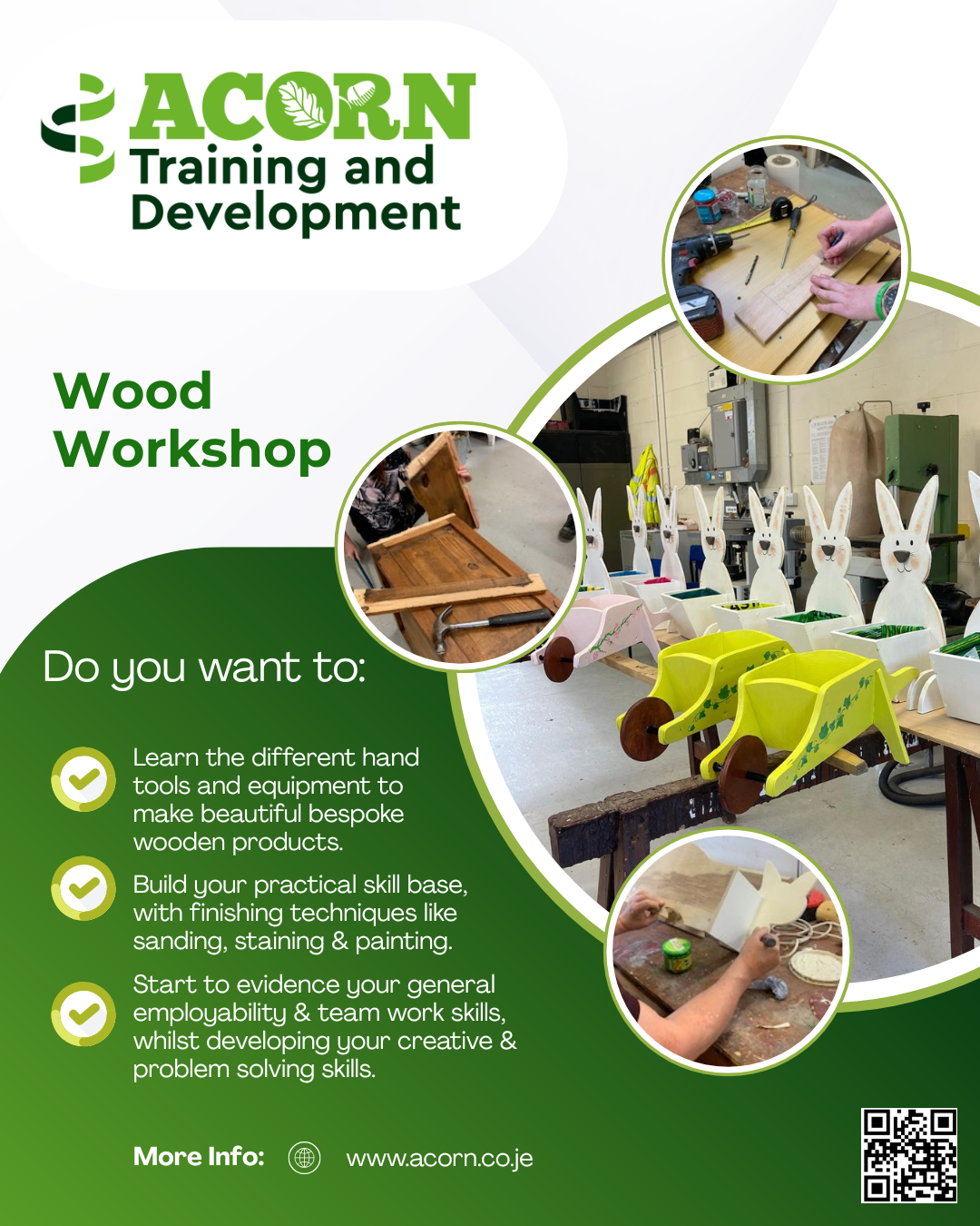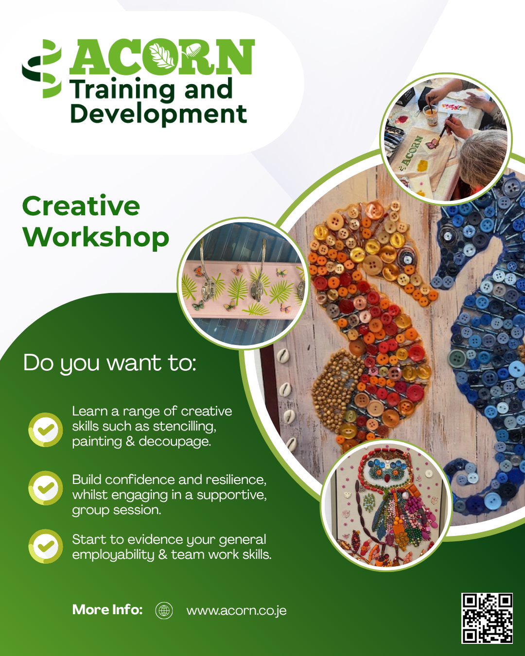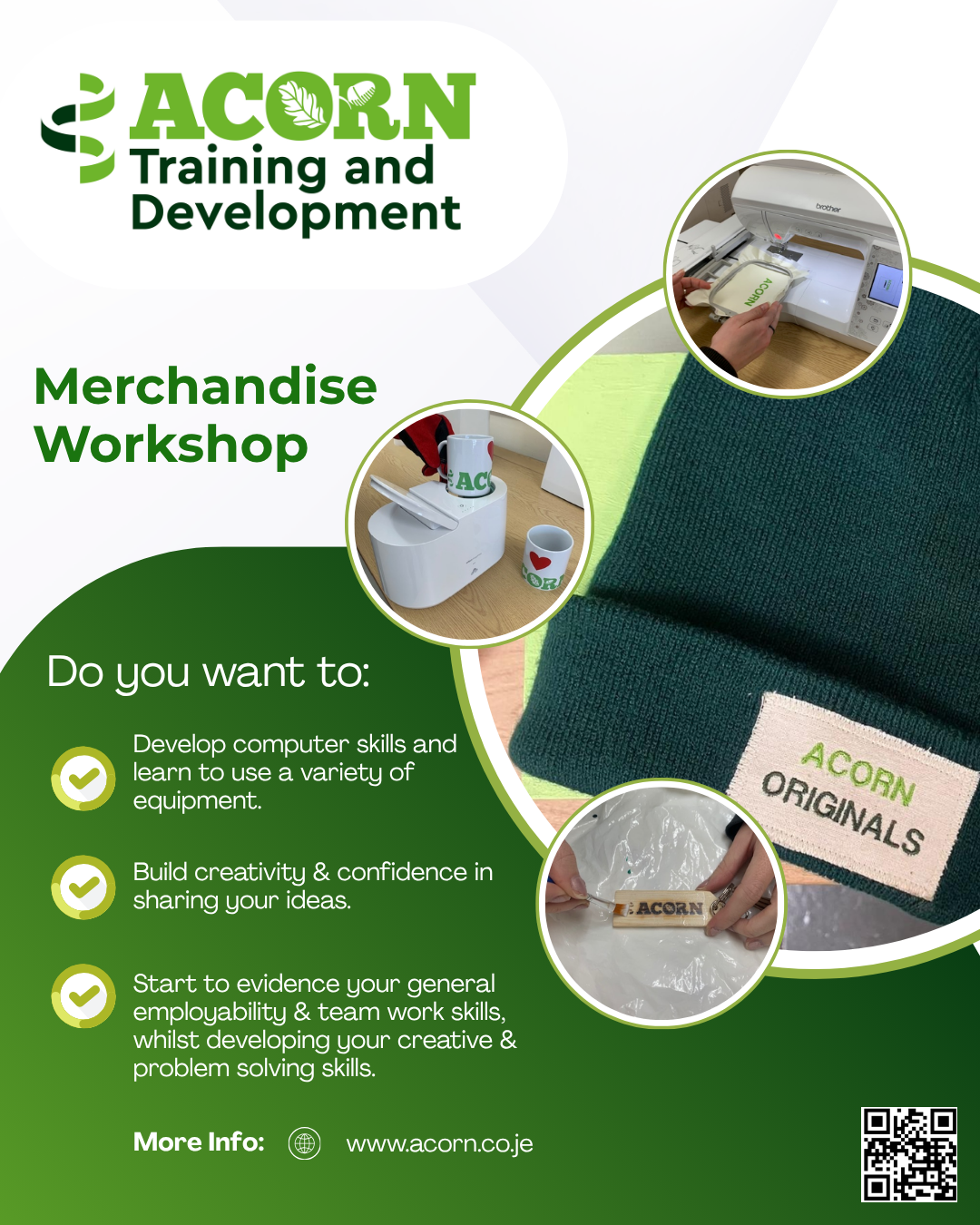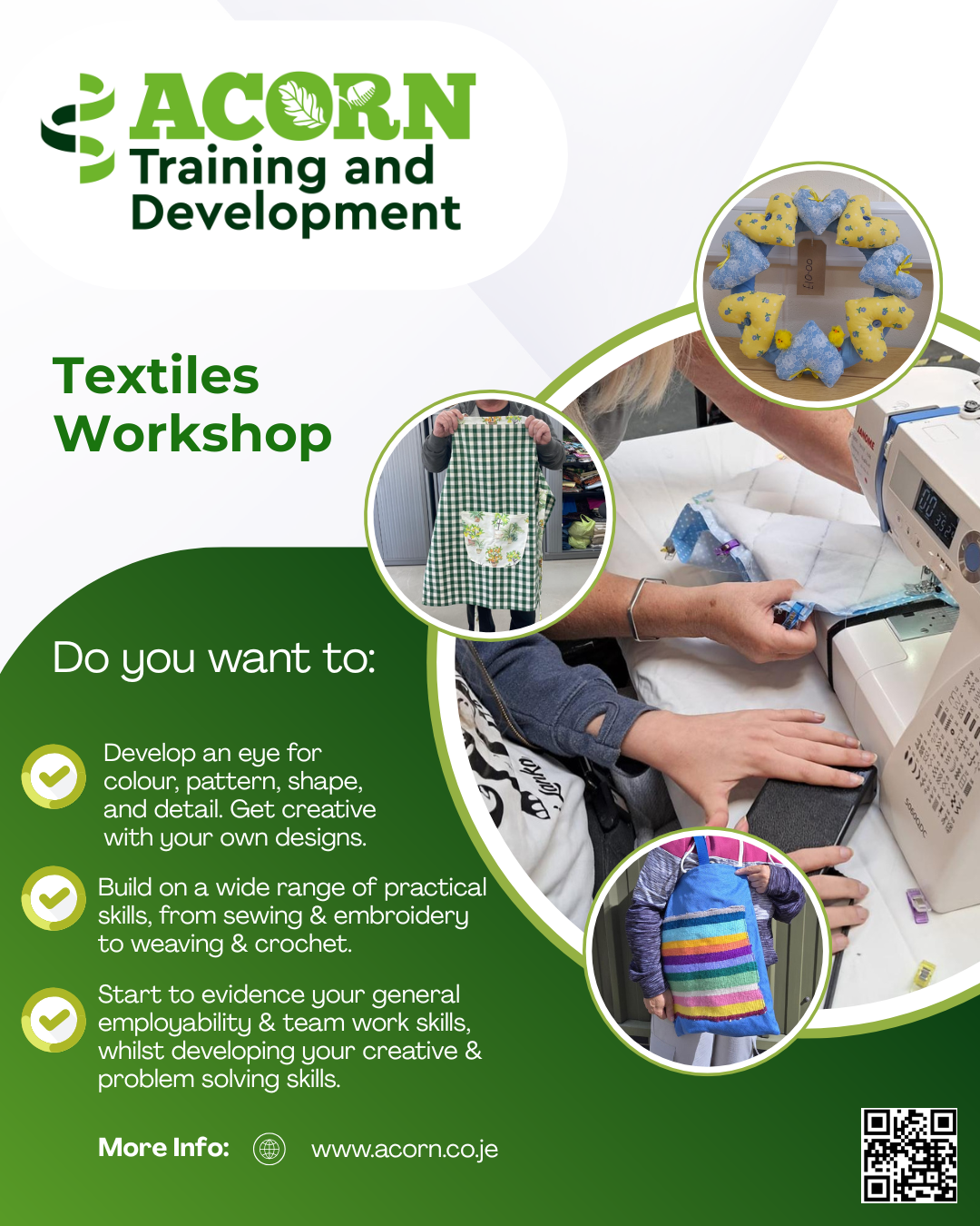 Our Acorn Training & Development group workshops are focused on developing a client's employment skills within a safe and supportive environment. They will learn new skills related to the workshop they are doing, for example, training in using different machinery, instruction in using a sewing machine, painting and waxing techniques or horticulture and plant care.